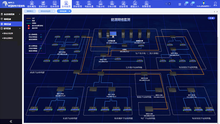 网络监测,可以对整个能源系统组网设备运行状态的以及仪表通讯状态进行监测,便于网络管理人员及时发现通讯设备和仪表的通讯异常,减少通讯中断对采集数据准确性的影响。