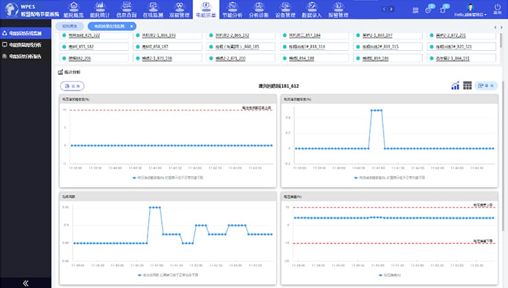 对配电系统进行三相电压不平衡、三相电流不平衡、功率因数、电流谐波畸变率、电压谐波畸变率和电压偏差等6个维度进行在线监测与诊断,保障企业用电质量安全。