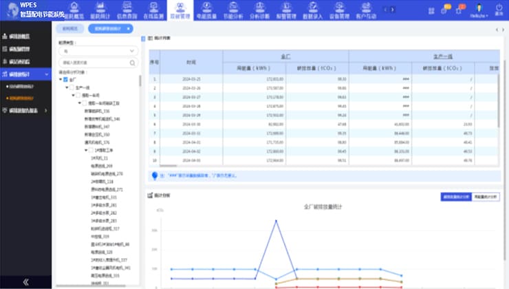 实时监测企业碳排放总量、排放趋势、排放占比。对重点用能设备和重点用能区域进行碳排放统计,排放超标时进行告警提示。按照国家标准对企业碳排放进行核算,为企业进行碳交易提供关键数据支撑,助力国家双碳目标的实现。